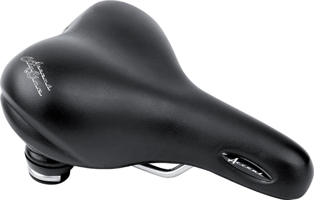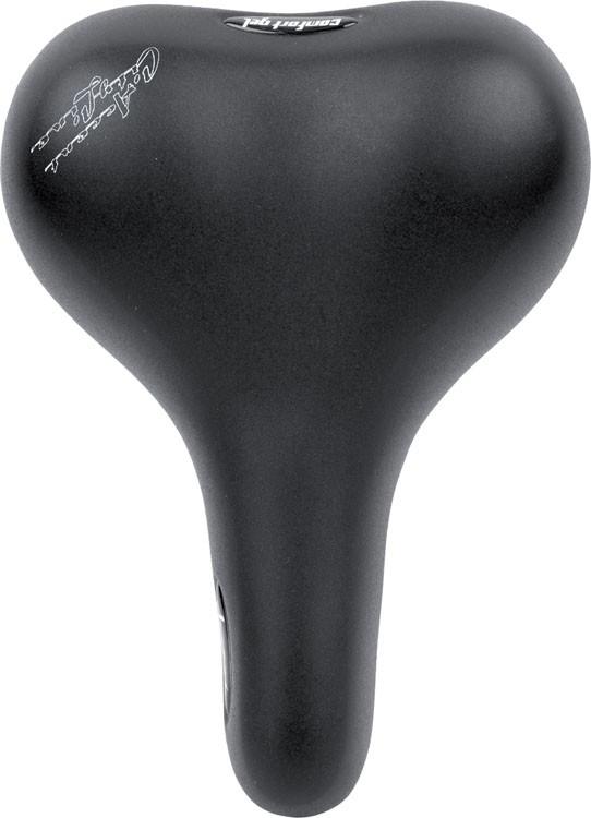 Wygodne siodełko damskie do jazdy turystycznej i miejskiej. Komfortowe wypełnienie żelowe. Pokrycie ze skóry syntetycznej. Tłumiące drgania elastomery. Stalowe pręty.